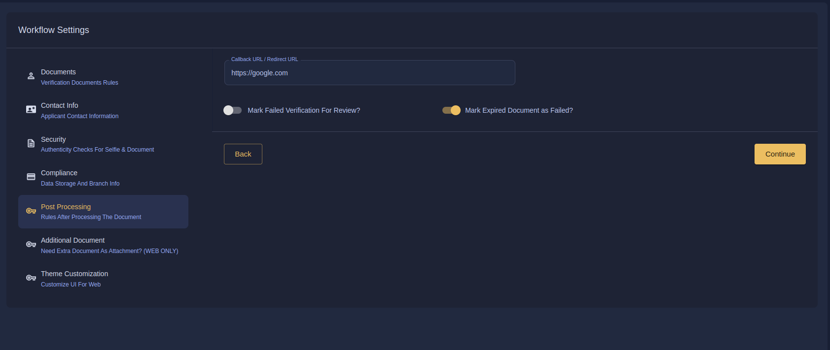 * **Mark Expired Document as Failed**: Enable this option to automatically mark expired documents as failed during the verification process.