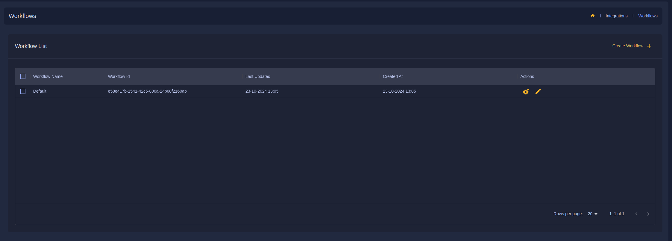 1. Click the Create Workflow Button, then enter the workflow name. Once completed, you can configure the Rules/Configuration by clicking the Magic icon in the action column.
